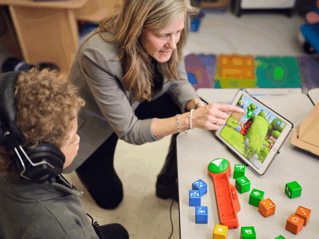 It really is an easy entry point for for teachers who maybe aren’t as comfortable or familiar with technology. Yeah, and if they’re watching it with their kids, then they’ll pick up all the lingo and the processes and, there are lots of teaching, moments. And then the kids, can download the app on various devices. And then we also have the blocks and the dock where they can actually manipulate the app using the blocks.